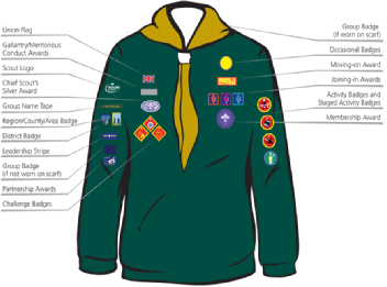 Staged Activity Badges. There are six badges, Hikes Away, First Aid, Information Technology, Swimming, Musician and Nights Away, which are staged across the first four Scouting Sections. A young person can gain whichever badge is appropriate to the levelthey have reached.
